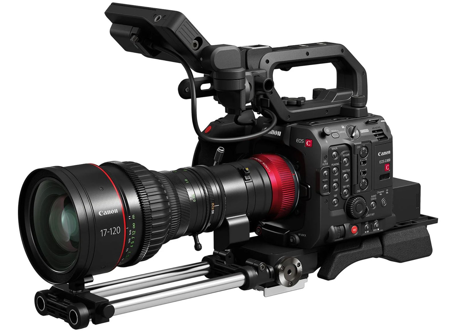 Although it uses the same RF mount, the Canon EOS C400’s design differs from that of the EOS R5C and EOS C70. The EOS C400 adopts a boxy design similar to the EOS C300 III and EOS C500 Mark II. The camera’s body is 10% smaller than the C500 Mark II, making it more portable and practical for various shooting needs.